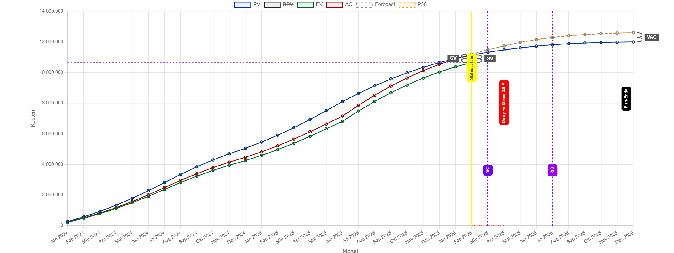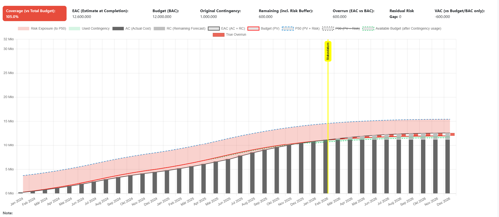 Forecasts, Szenarien, Contingency-Verläufe und Risiken stehen im Mittelpunkt – nicht reine Rückschau.